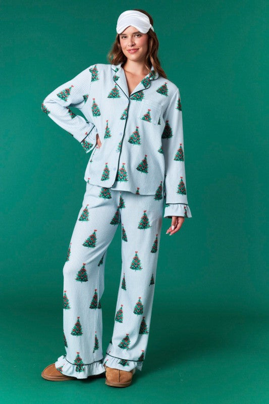 Get cozy and festive in the Striped Christmas Tree Pajama Set — soft, stretchy, and holiday-ready.